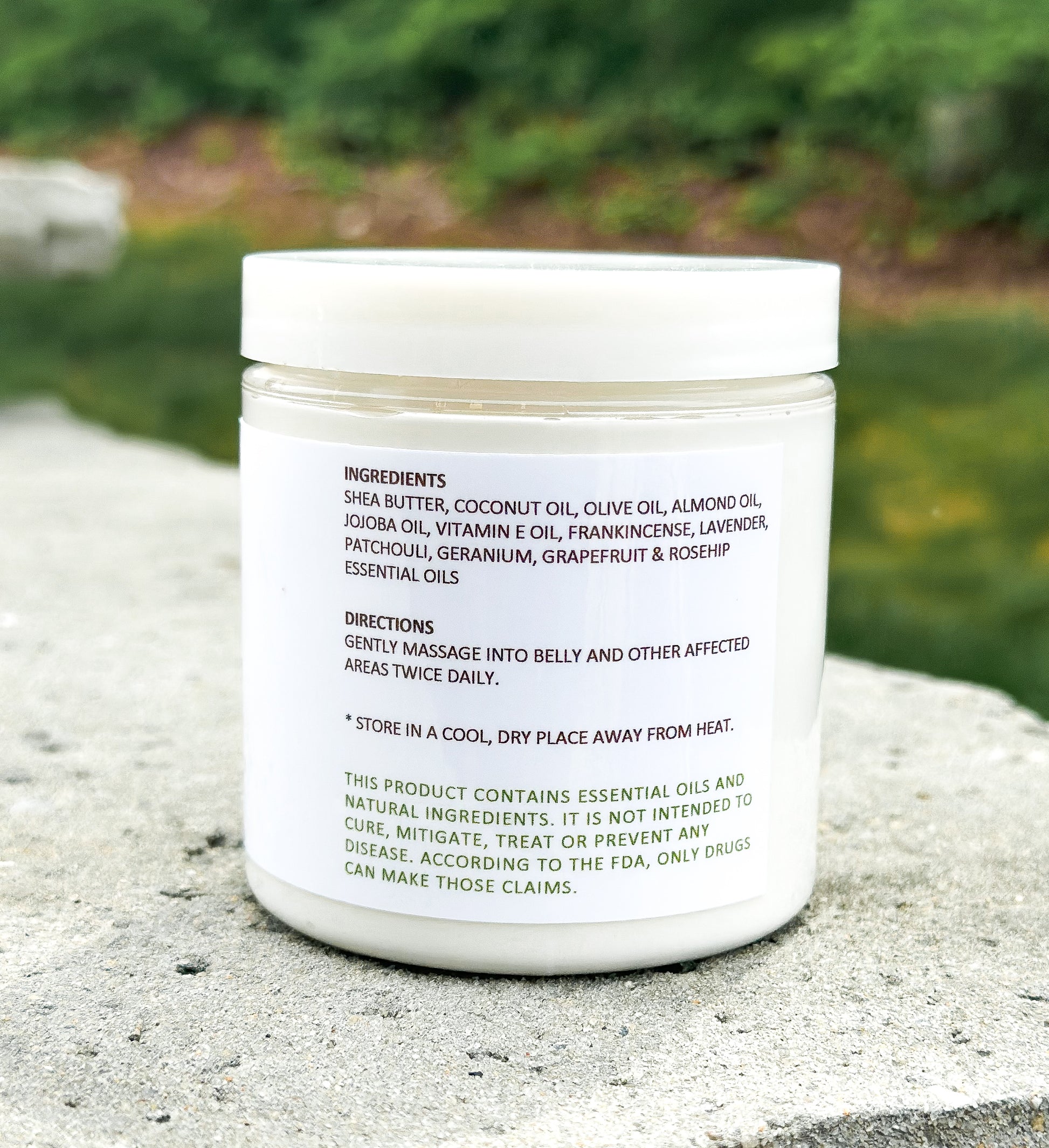 Gently massage into belly & other affected areas twice daily.