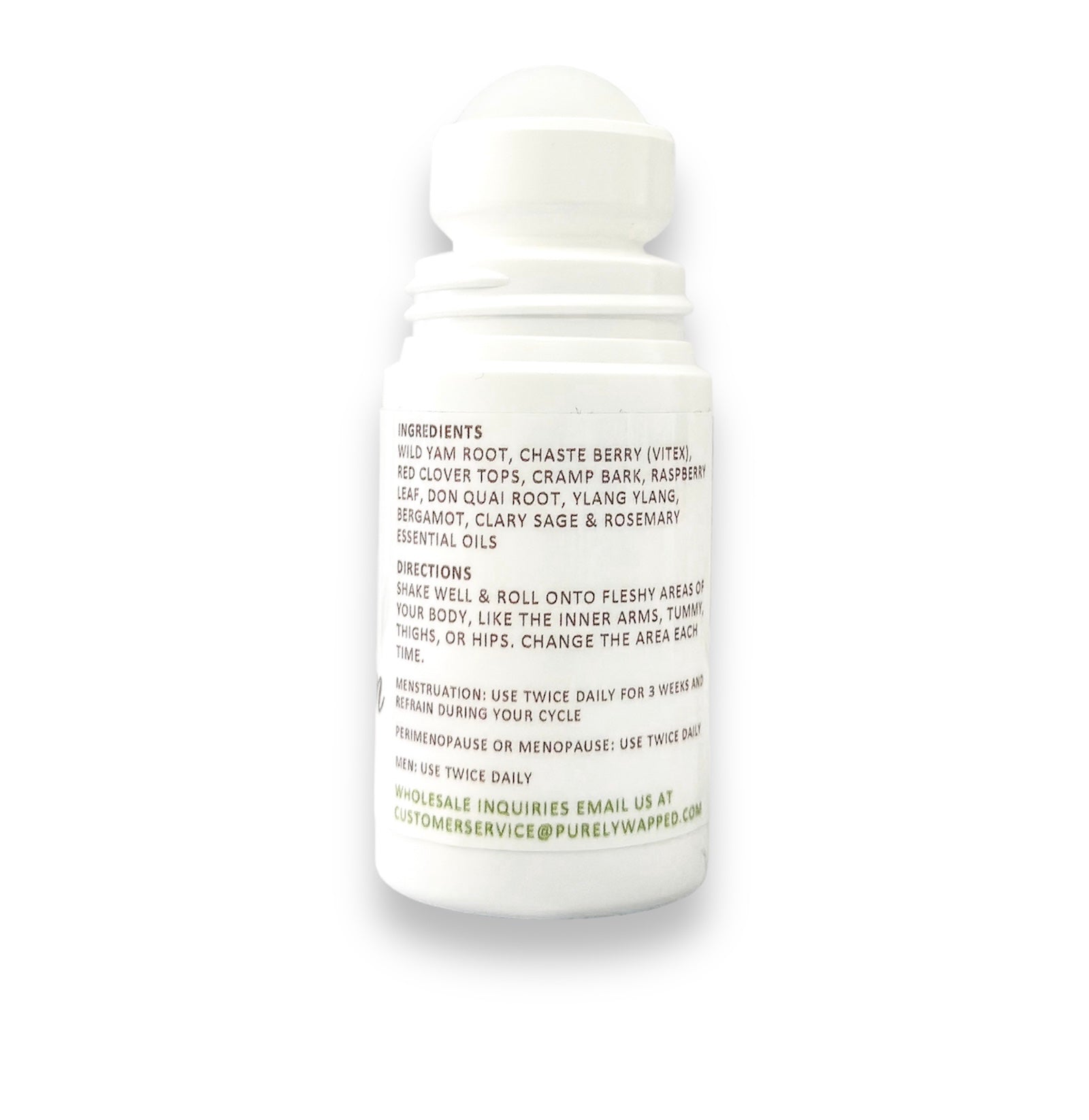 Shake well & roll onto fleshy areas of your body, like the inner arms, tummy, thighs or hips. Change the area you apply each time.
