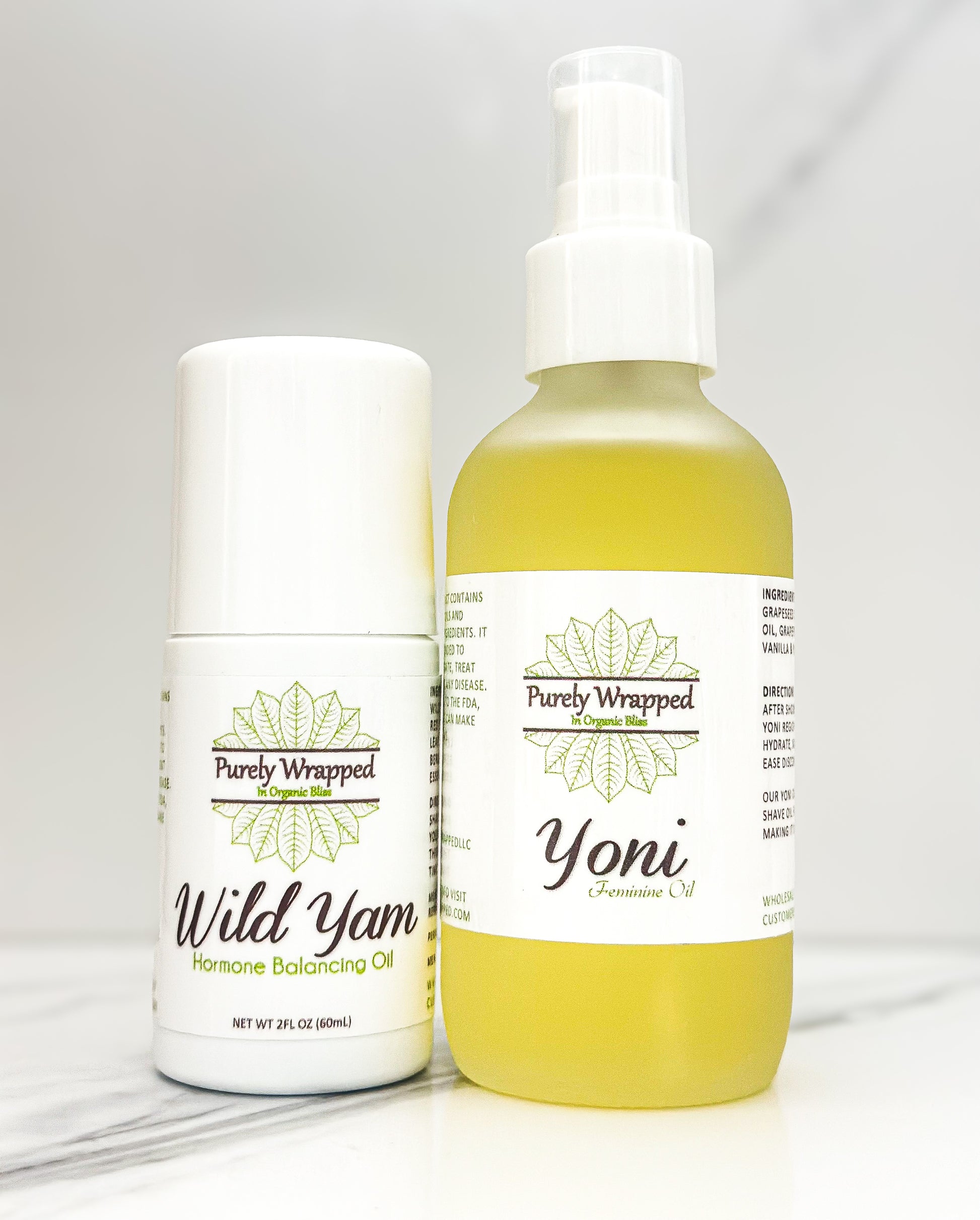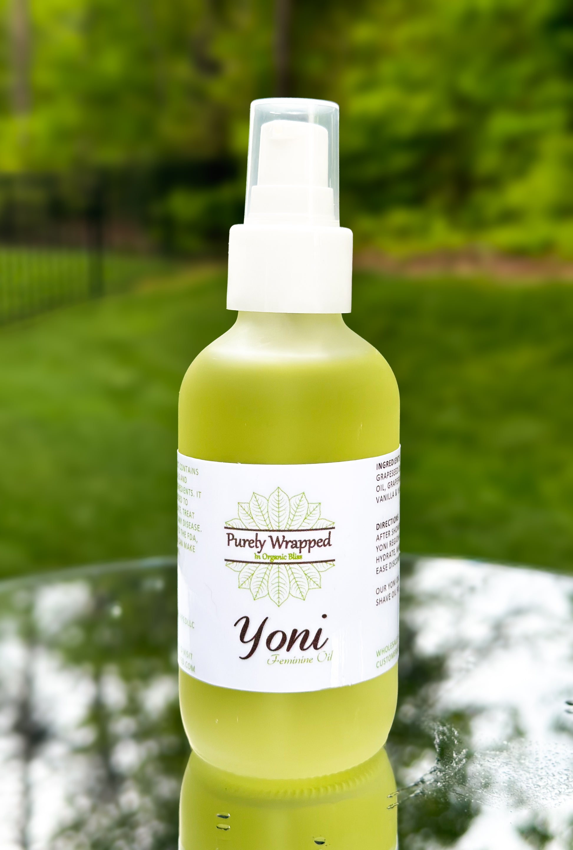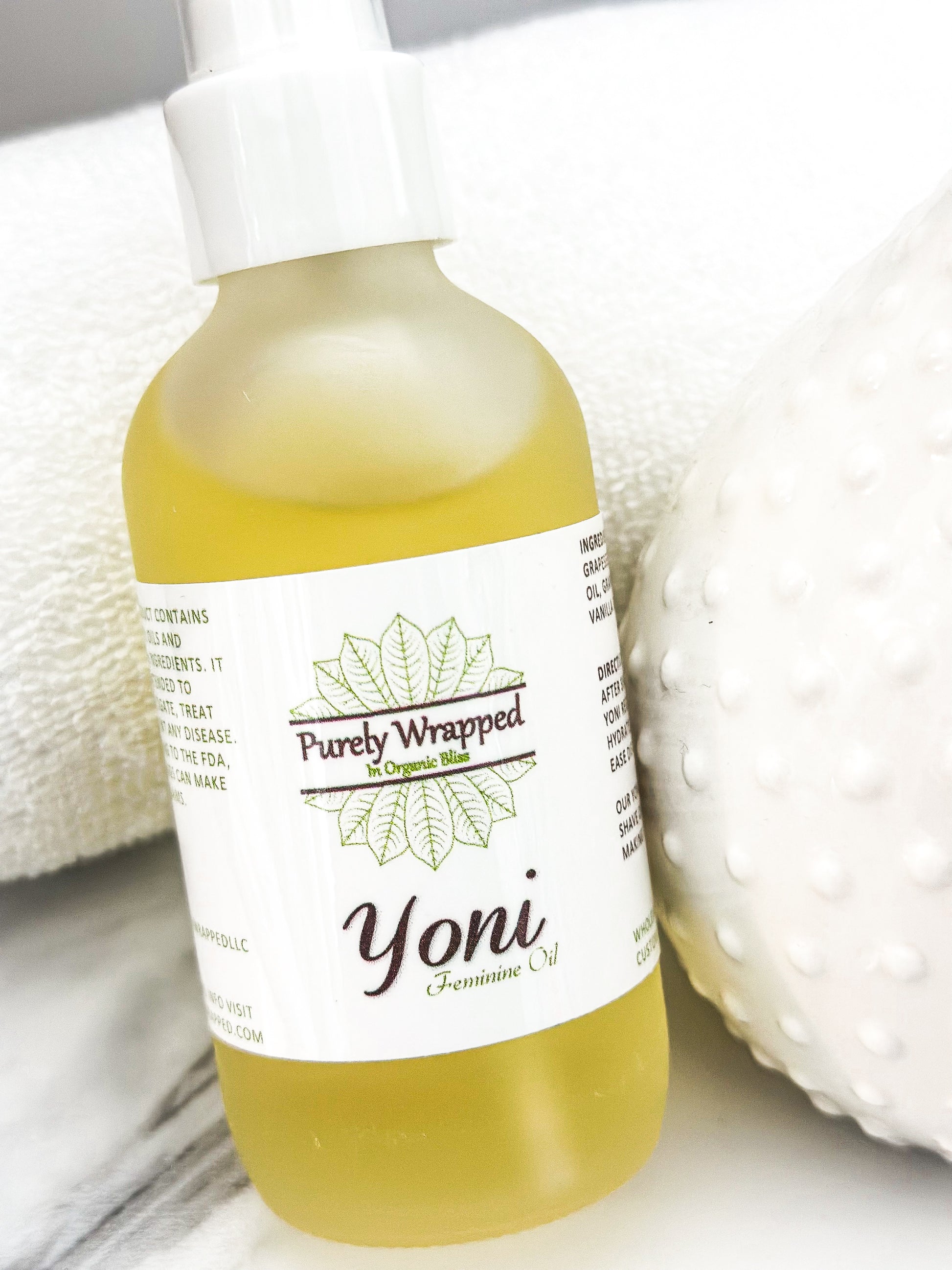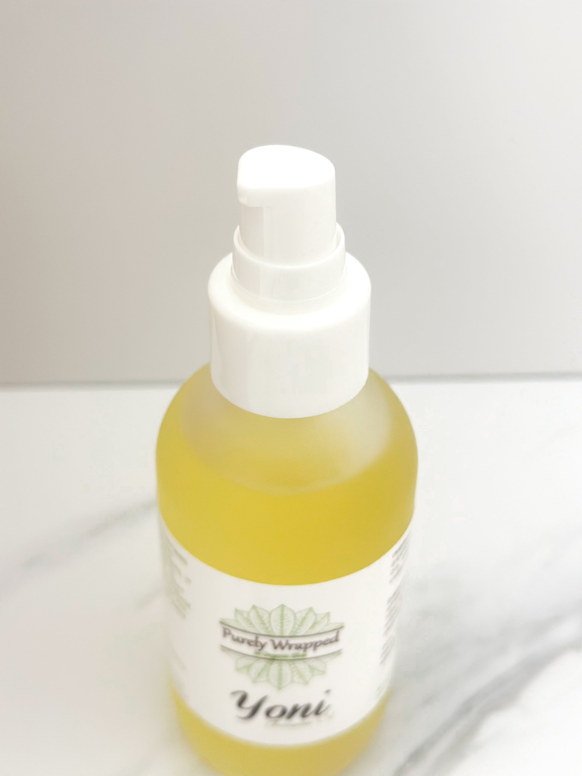 Purely Wrapped Yoni oil is a natural blend of oils specifically formulated for the intimate area of a woman's body. Designed to promote vaginal health, moisture, and balance, our Yoni Oil is nourishing and can help soothe irritation, support pH balance, and enhance overall comfort.